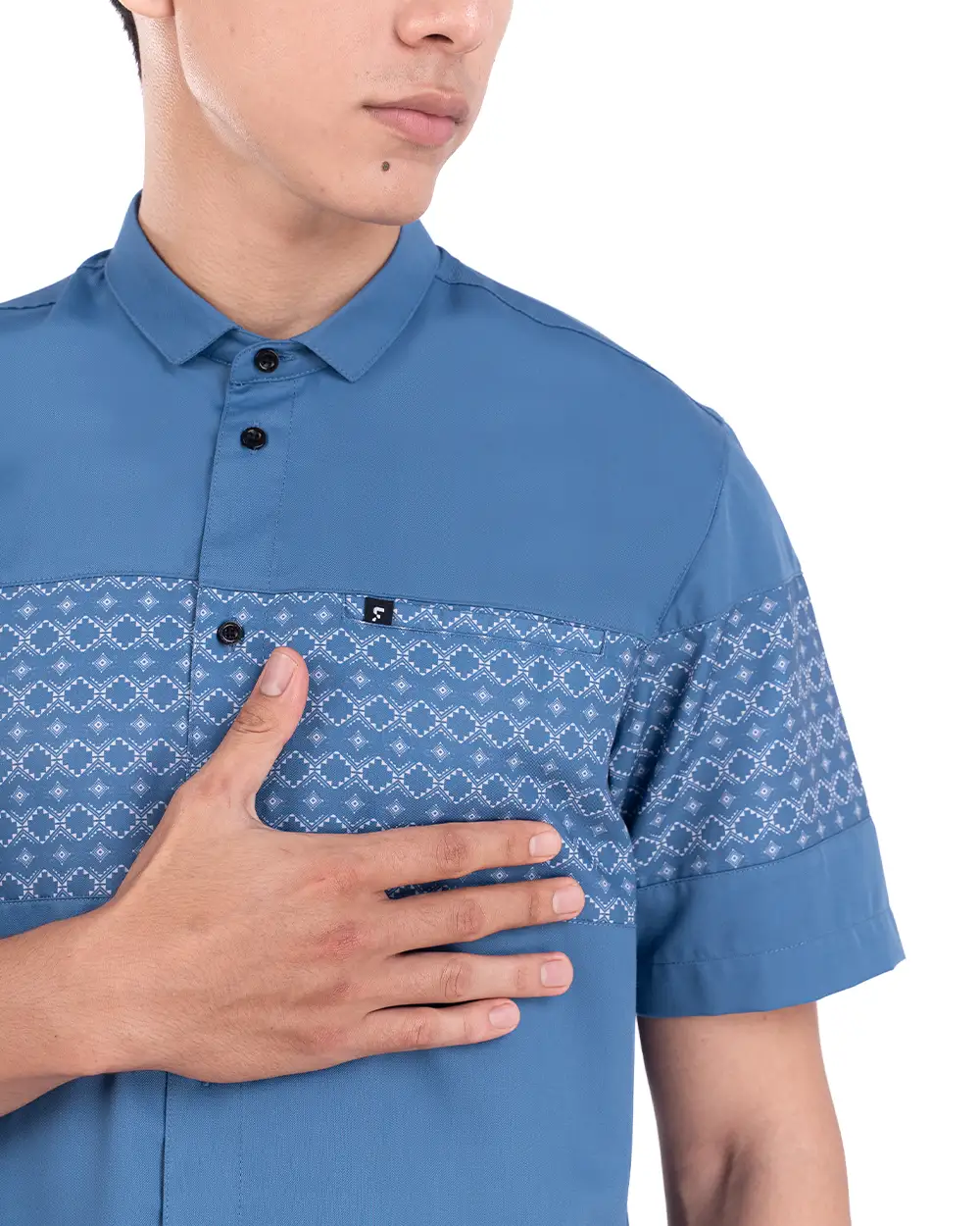 Series koko modern exclusive dengan kombinasi warna dan motif geometric pattern yang memancarkan kesan elegan dan intelektual. Motif belah ketupat berlapis dengan detail titik dan garis berpadu dengan elemen segitiga kecil yang menyerupai gerigi, menciptakan kesan tegas namun tetap halus.