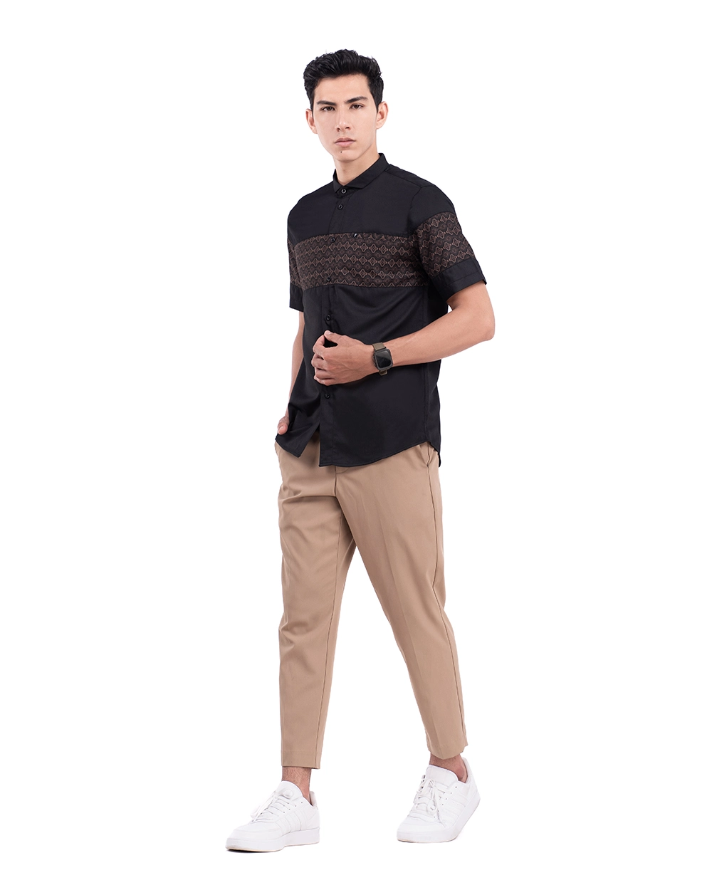 - Modern size cutting (ditengah tantara reguler dan slimfit)