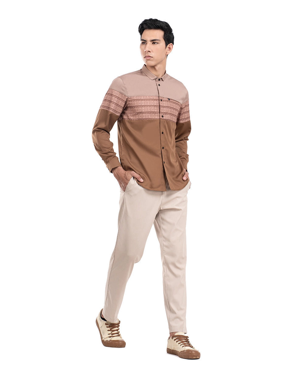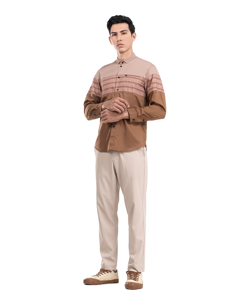 - Modern size cutting (ditengah tantara reguler dan slimfit)