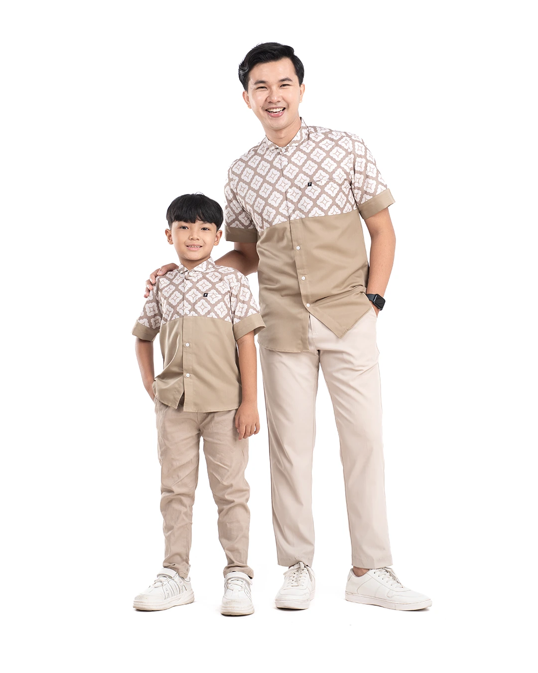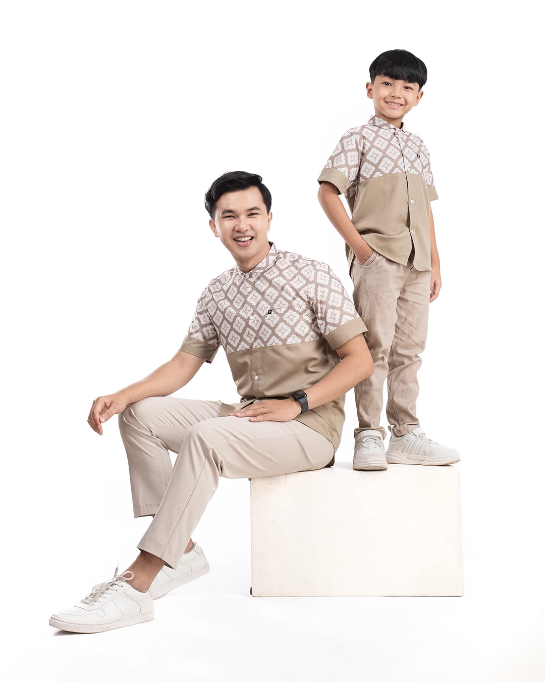 Series Koko Modern Eksklusif dengan perpaduan motif Islamic Geometric yang tersusun dalam ritme simetris dan saling terhubung. Pola ini melambangkan keterikatan harmonis antara dua generasi ayah dan anak yang berjalan berdampingan dalam nilai dan visi hidup Islami.