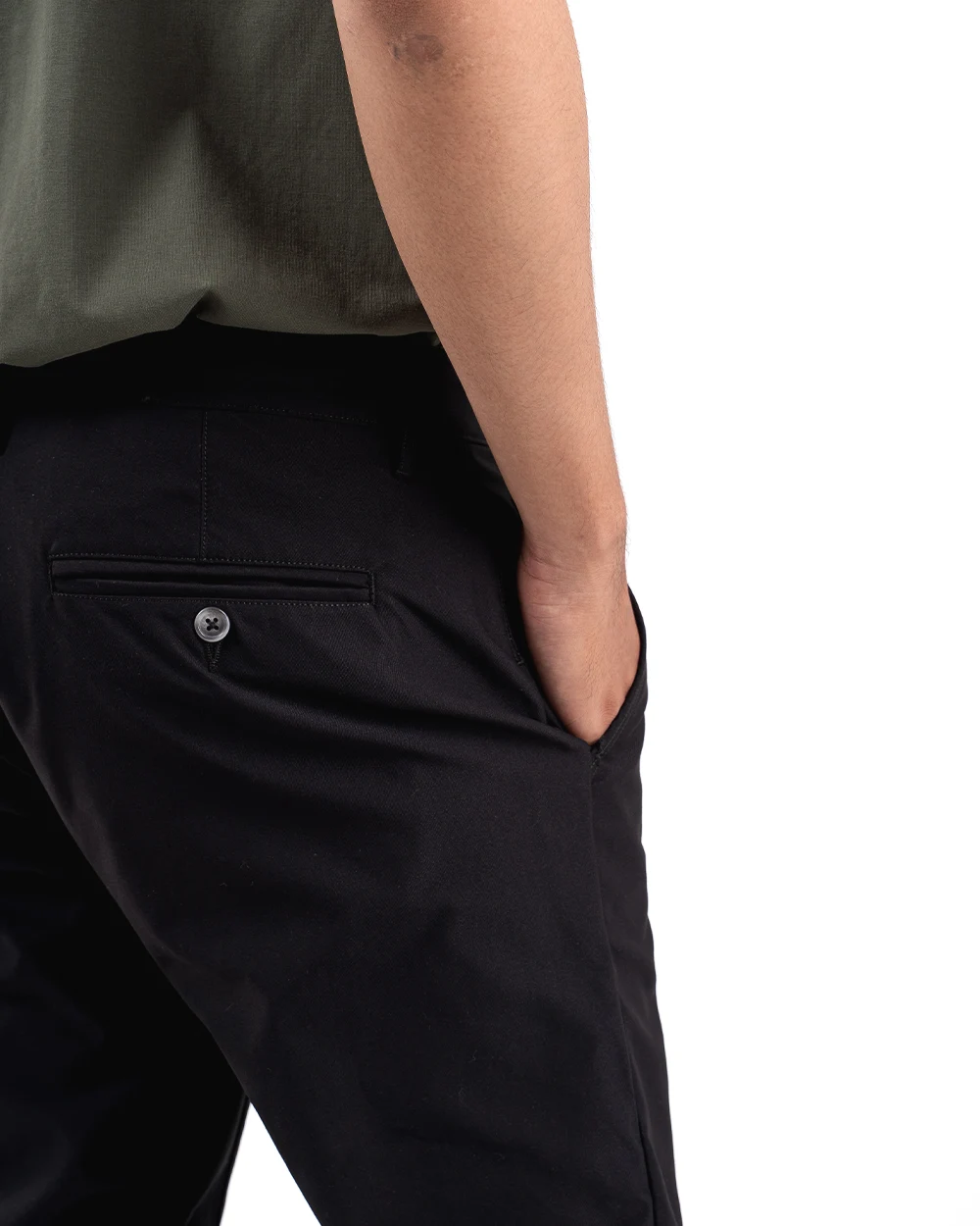 Mencuci Sayed Chinos Black dengan suhu yang rendah, tidak diberi pemutih, dan disetrika dengan suhu sedang akan membantu mempertahankan warna dan bahan.