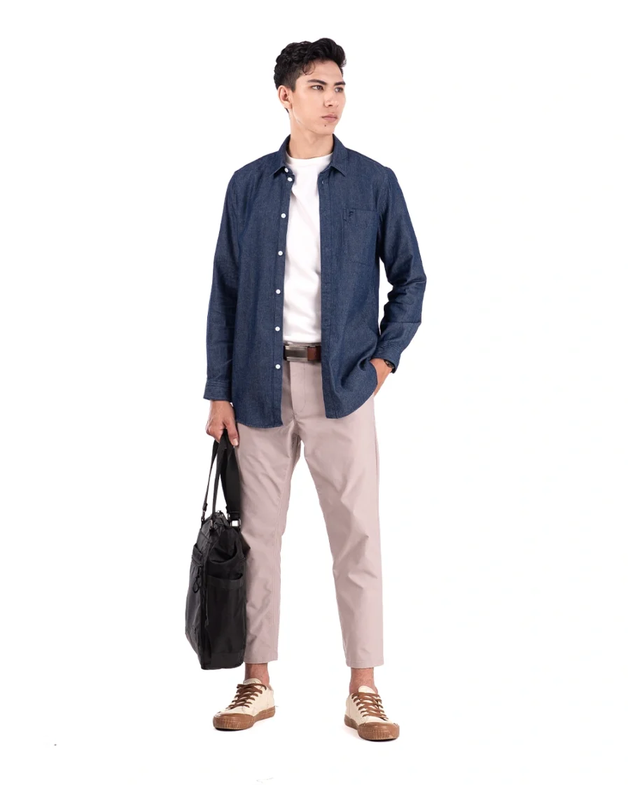Teksturnya halus dan nyaman, menjadikannya pilihan sempurna untuk gaya smart casual yang effortless. Potongan modern fit dengan siluet ramping memberi tampilan maskulin dan rapi. Penampilan ini bikin lebih percaya diri dengan look denim yang modern dan berkelas.