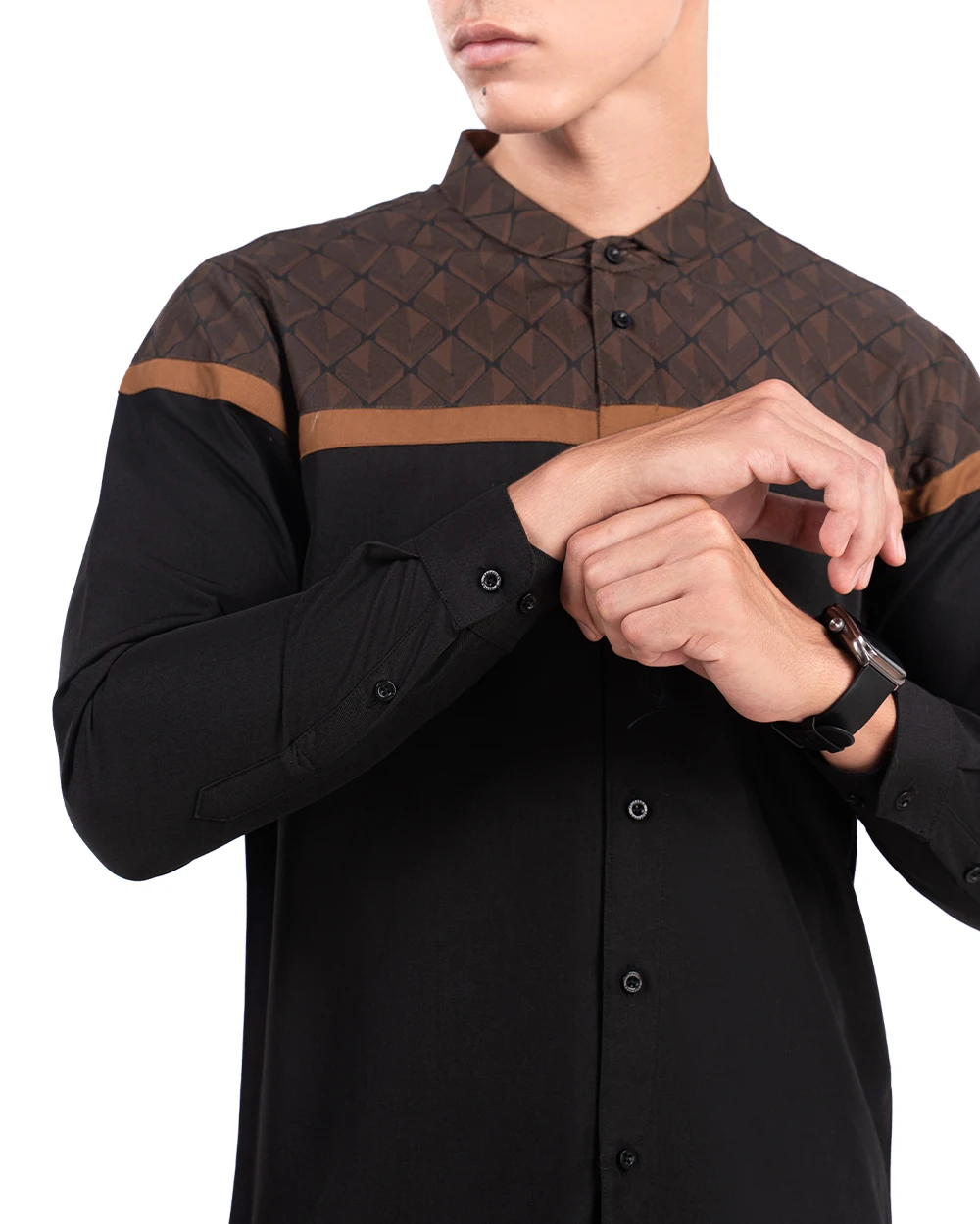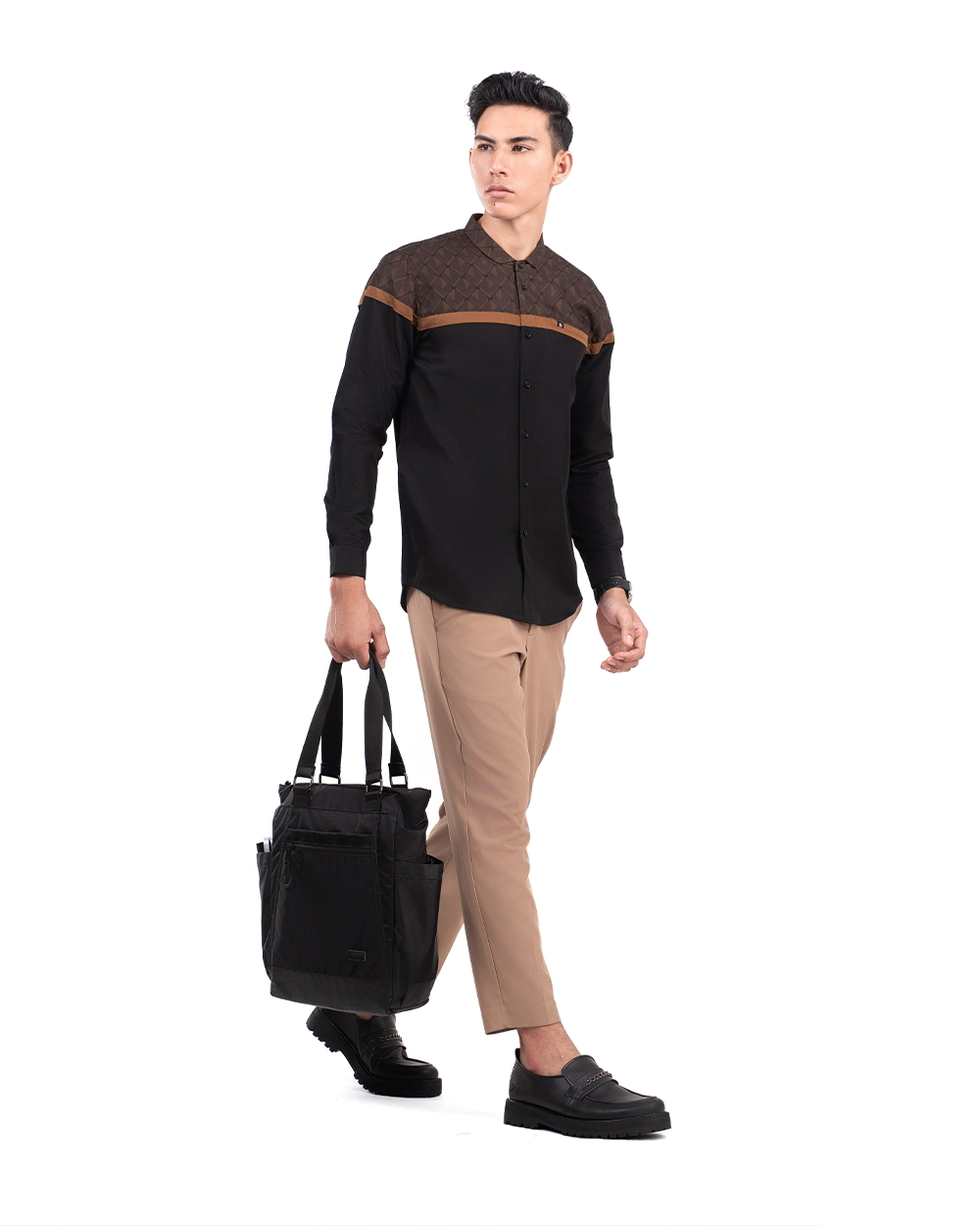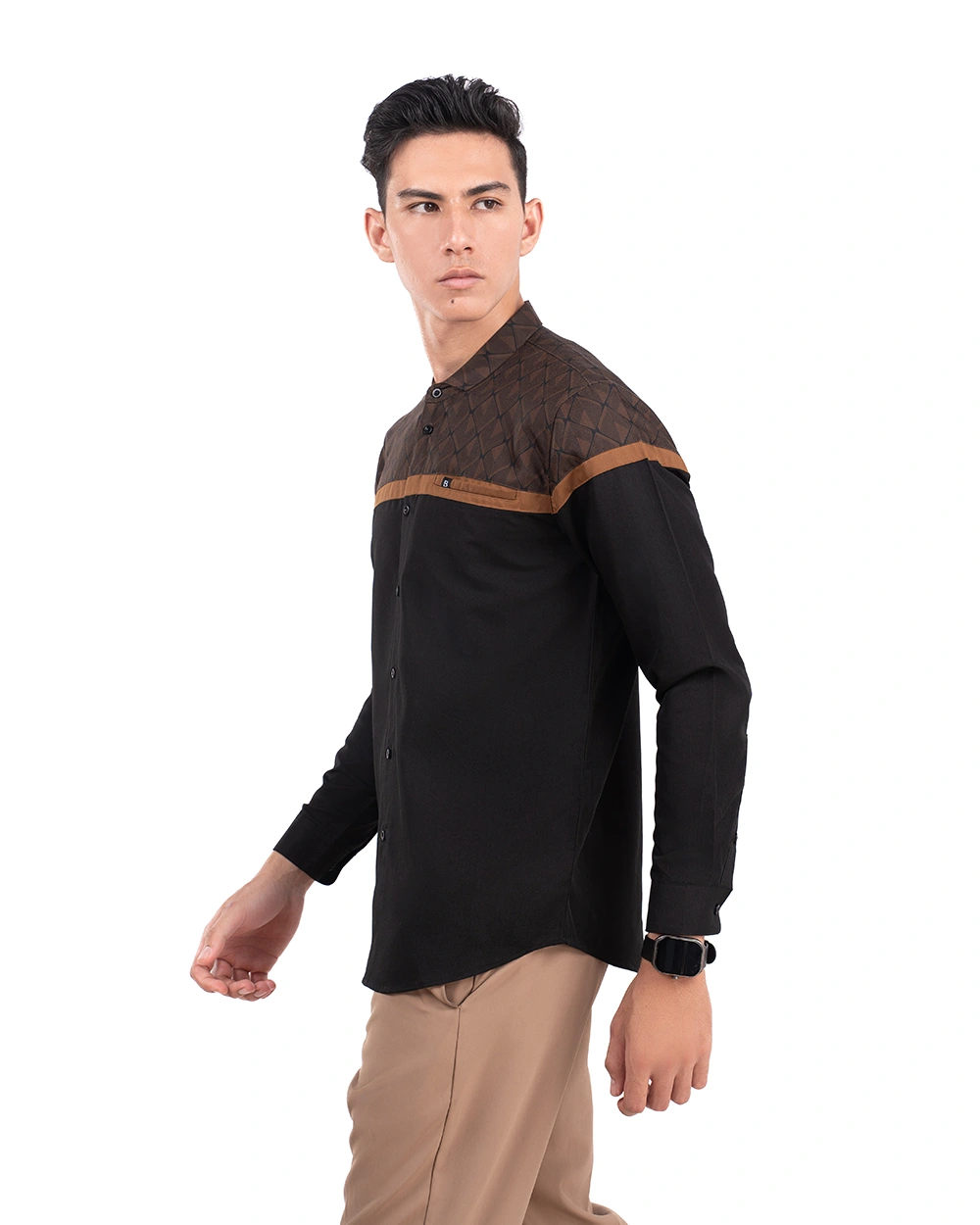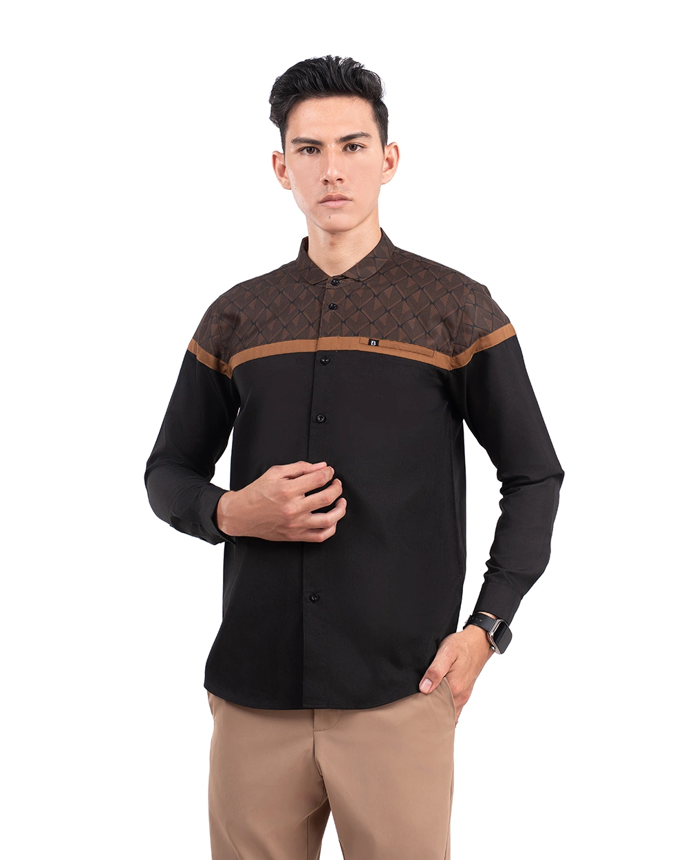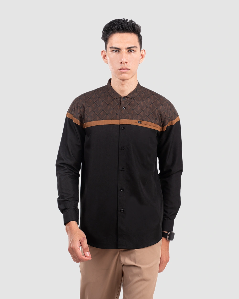 Motif Golden Diamond melambangkan kemuliaan dan nilai ilmu yang berharga, sementara Gold Line hadir sebagai pengikat yang merepresentasikan pentingnya mencatat dan menjaga ilmu agar tak hilang oleh waktu. Balutan warna hitam sebagai dasar mempertegas kesan elegan, keteguhan karakter, dan kewibawaan penuntut ilmu. Penampilan ini menghadirkan makna mendalam dengan gaya halal modern yang berkelas.