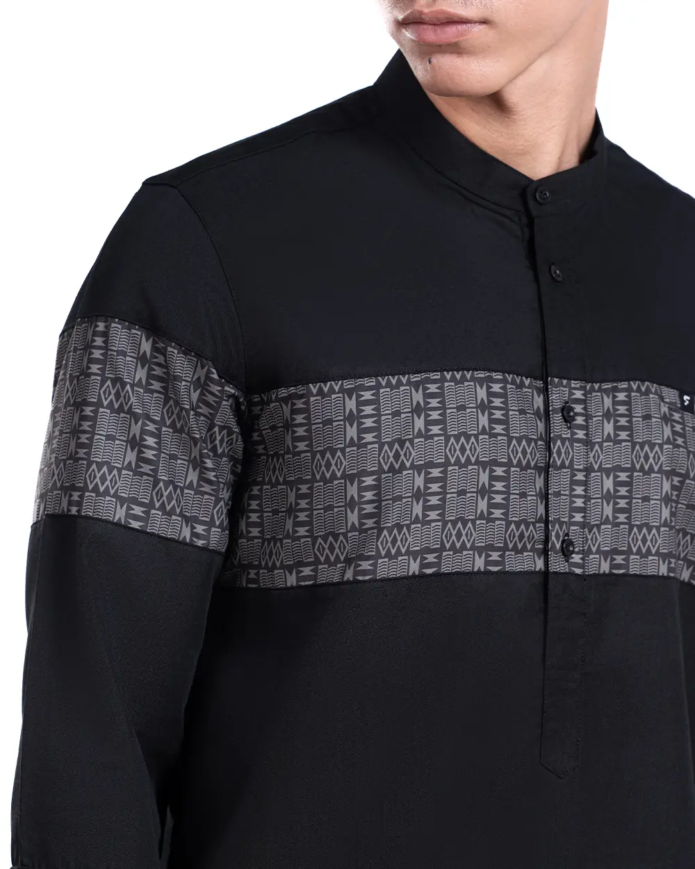 - Motif tradisional geometris yang rapi dan presisi